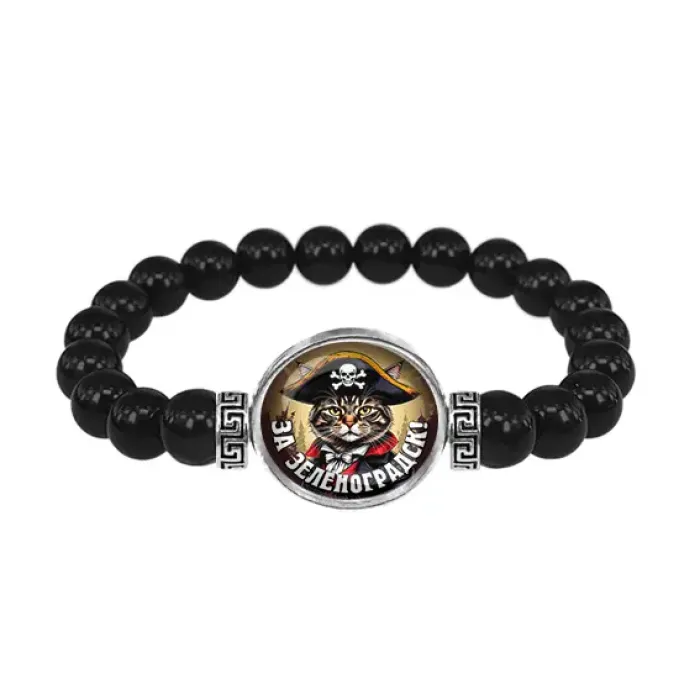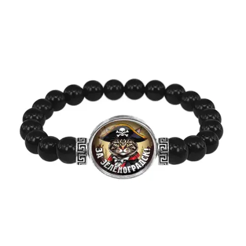 Стрейч-браслет из натурального чёрного агата с декоративным элементом под стеклянной линзой.