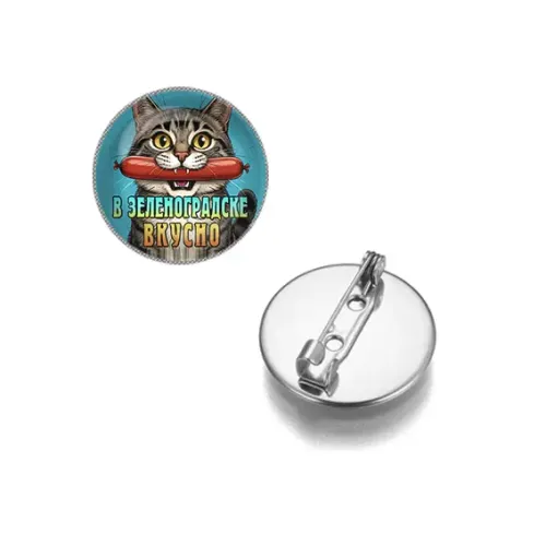 Круглый значок, цвет серебро, В Зеленоградске вкусно C0206023