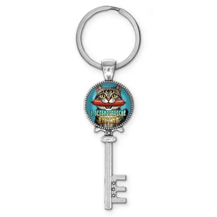 Брелок ключ, цвет серебро, с кольцом для ключей, В Зеленоградске вкусно C0206044