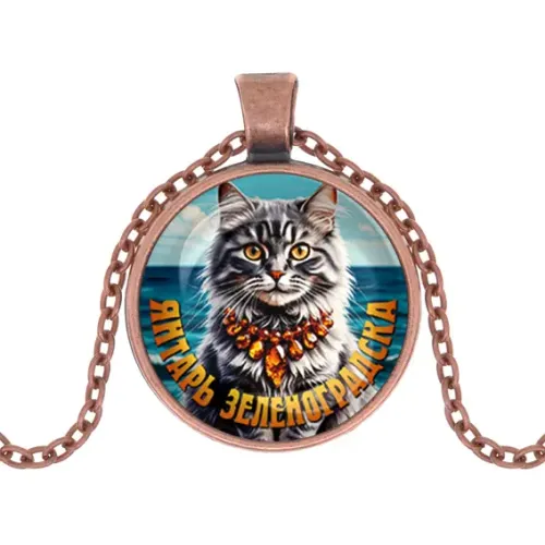 Материал и изготовление: Бижутерный сплав с покрытием под медь, стеклянный элемент с изображением, защищённый выпуклой линзой. Застёжка типа лобстер.
