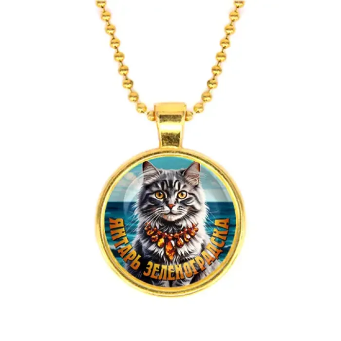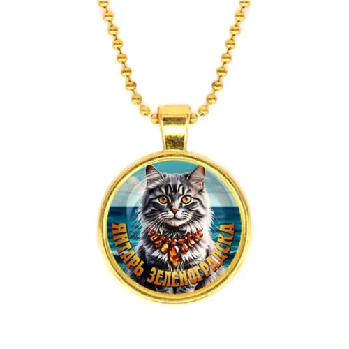 Кулон с цепочкой. Бижутерный сплав с золотым покрытием и стеклянной линзой.