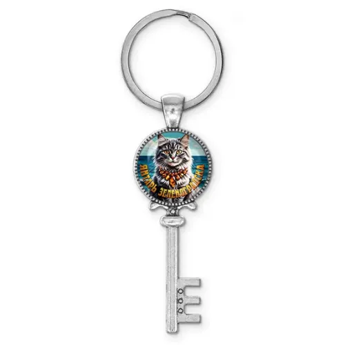 Брелок-ключ для ключей из бижутерного сплава с серебристым покрытием и стеклянной линзой.