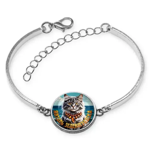 Браслет из бижутерного сплава с декоративным элементом под стеклянной линзой. Безразмерная регулируемая конструкция.