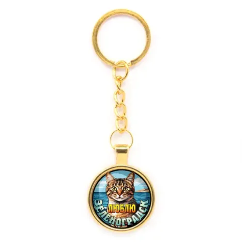 Круглый брелок, цвет золото, с цепочкой, Люблю Зеленоградск C0208020