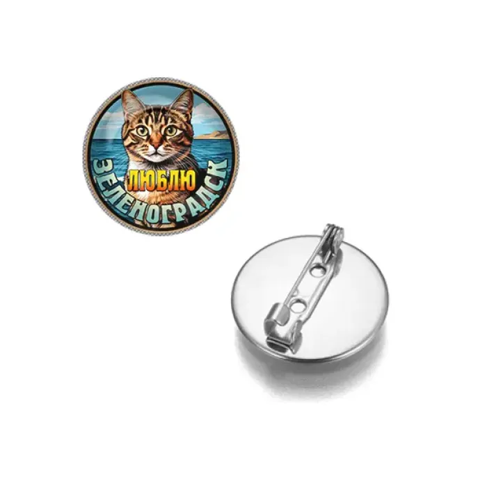 Круглый сувенирный значок из бижутерного сплава с изображением «Люблю Зеленоградск».