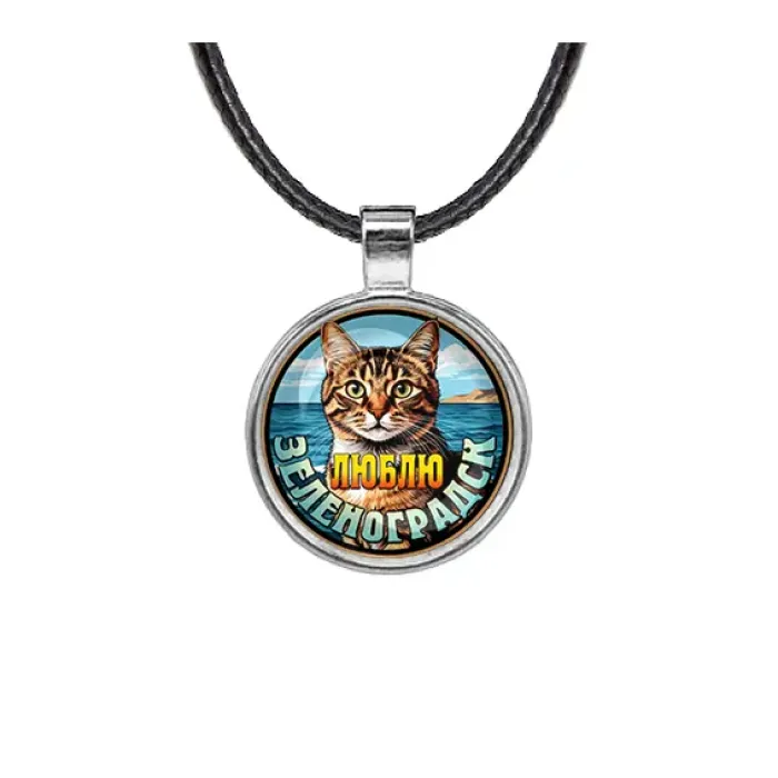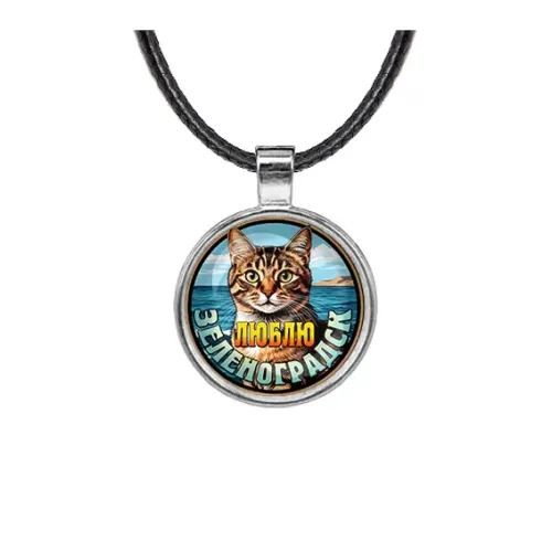 Сувенирный кулон с символикой города Зеленоградск. Материал — бижутерный сплав с серебряным покрытием и стеклянной линзой.