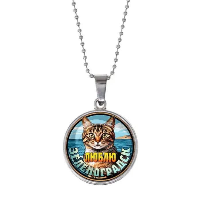 Сувенирный кулон с символикой города Зеленоградск. Изготовлен из бижутерного сплава с серебряным покрытием и стекла.