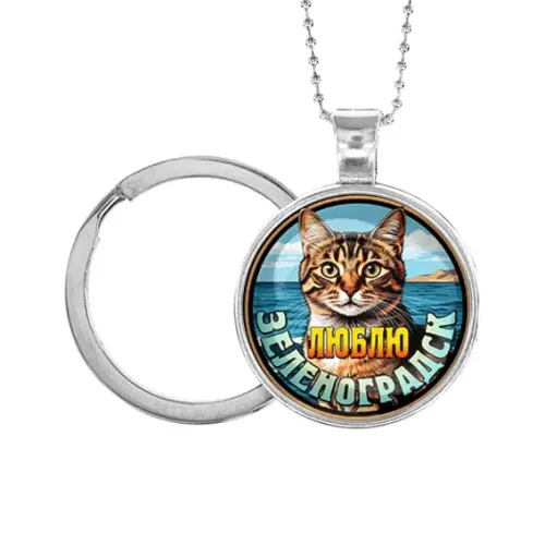 Кулон-брелок с символикой Зеленоградска. Изготовлен из бижутерного сплава с серебристым покрытием и стекла.