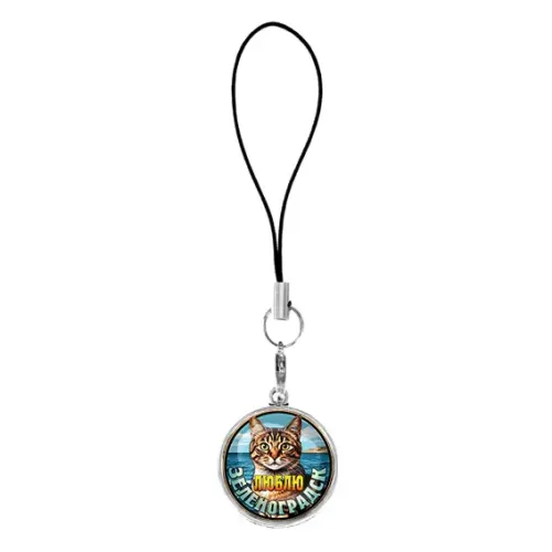 Подвеска для телефона, цвет серебро, со шнурком, Люблю Зеленоградск C0208060