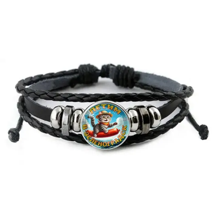 Кожаный браслет с изображением под стеклянной линзой.