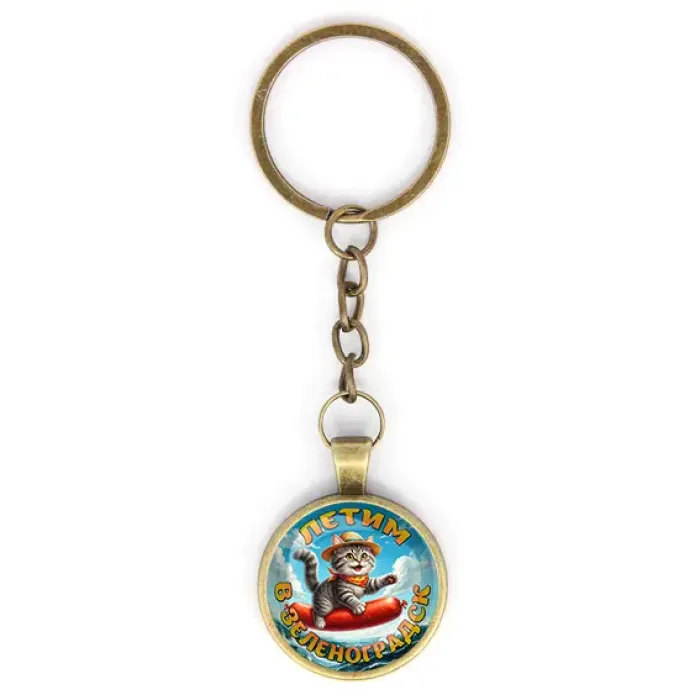 Круглый брелок, цвет бронза, с цепочкой, Летим в Зеленоградск C0209018