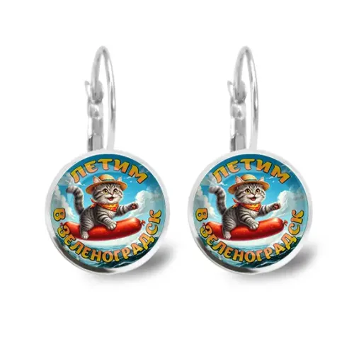 Материал и изготовление: Бижутерный сплав с покрытием под серебро, выпуклые стеклянные линзы. Замок типа левербэк.