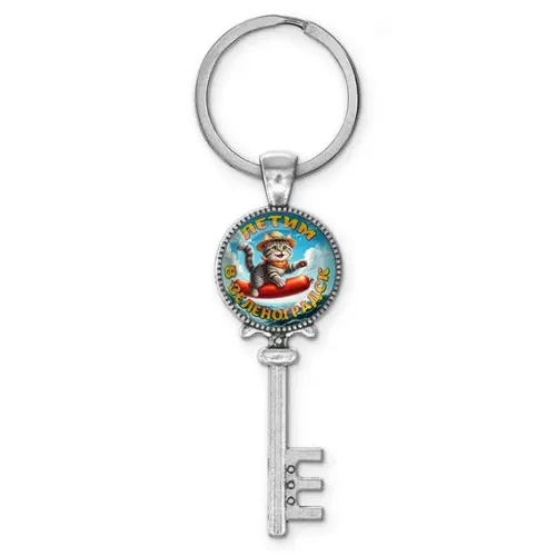 Этот стильный брелок в форме ключа станет не только практичным аксессуаром, но и символом новых путешествий. Он выполнен из бижутерного сплава с покрытием под бронзу и дополнен стеклянной линзой, защищающей изображение. Размеры брелока составляют 60 x 20 мм, а диаметр кольца для ключей — 30 мм.