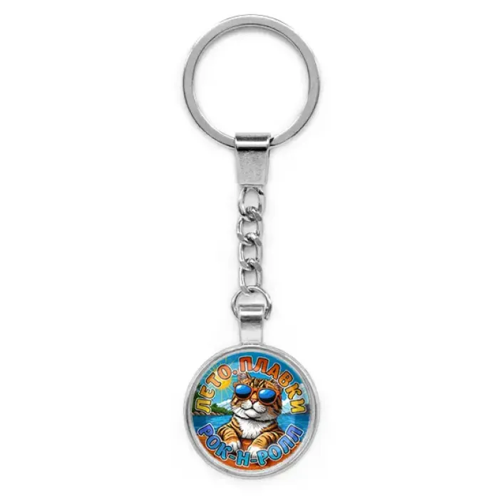 Круглый брелок, цвет серебро, с цепочкой, Лето. Плавки. Рок-н-ролл C0210022