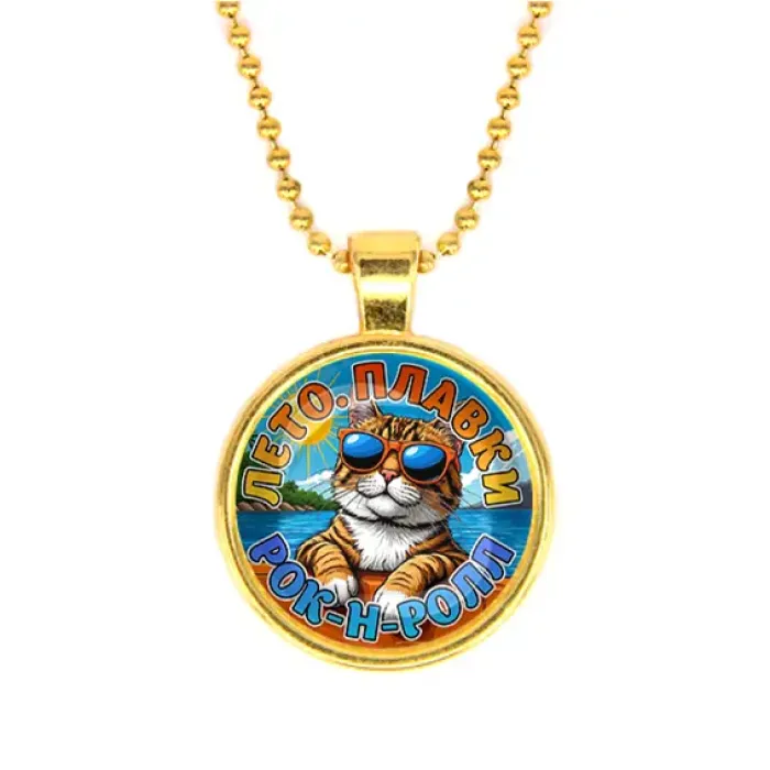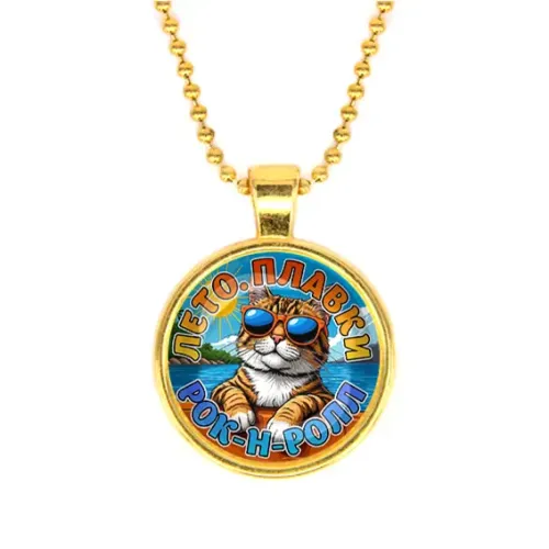 Кулон с цепочкой из бижутерного сплава в золотом цвете с изображением на летнюю тематику.