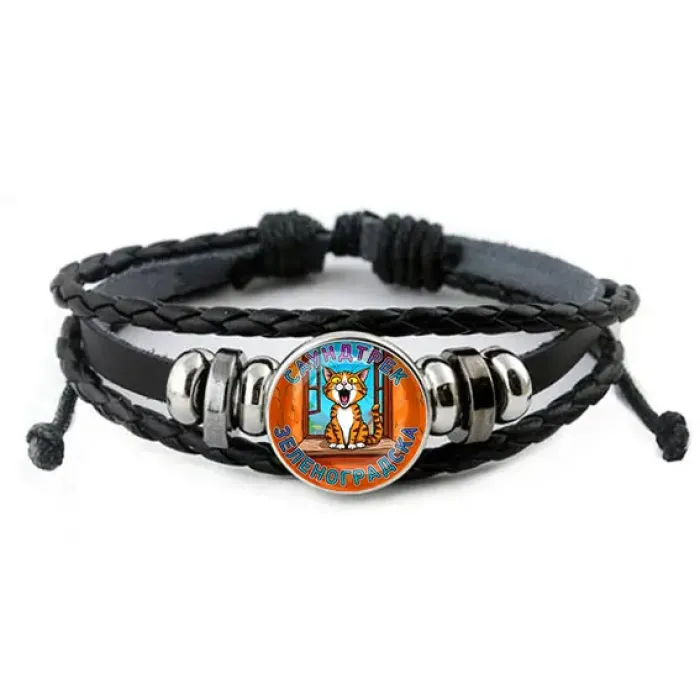 Материал и изготовление: Искусственная кожа (экокожа), бижутерный сплав с покрытием под серебро. Декоративный элемент с изображением диаметром 20 мм защищён выпуклой стеклянной линзой.