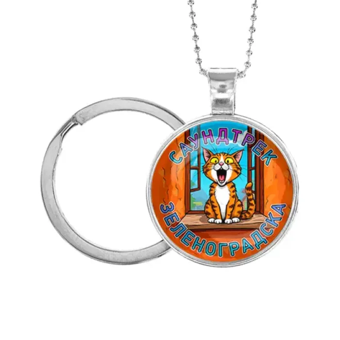 Кулон-брелок «Саундтрек Зеленоградска» выполнен из бижутерного сплава с серебристым покрытием и стеклянной линзой.