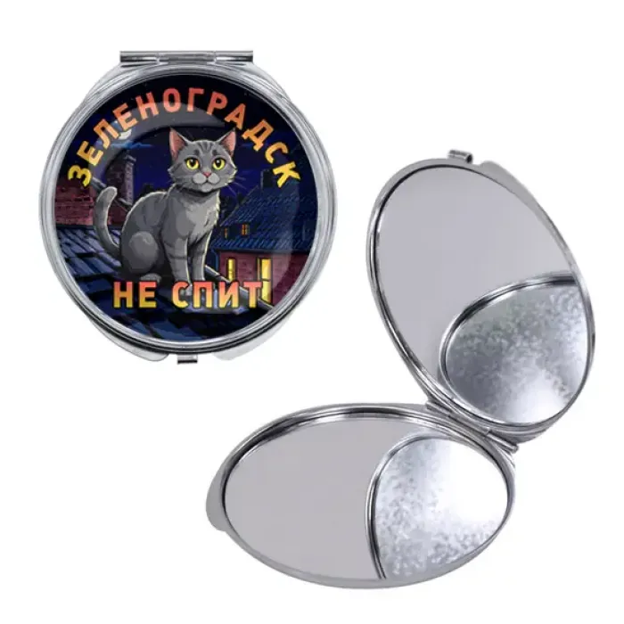 Круглое складное зеркало, цвет серебро, Зеленоградск не спит C0212016