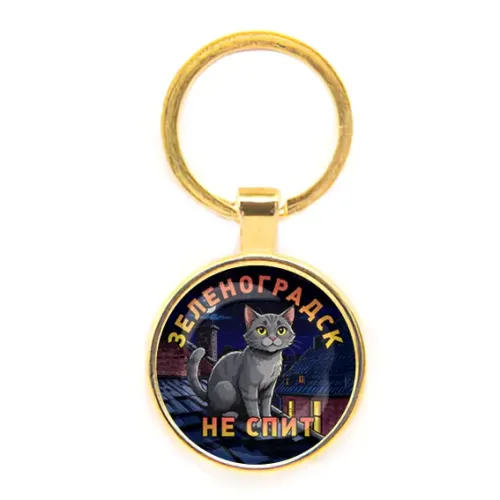 Круглый брелок из бижутерного сплава с изображением «Зеленоградск не спит».