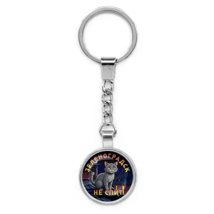 Круглый брелок, цвет серебро, с цепочкой, Зеленоградск не спит C0212022