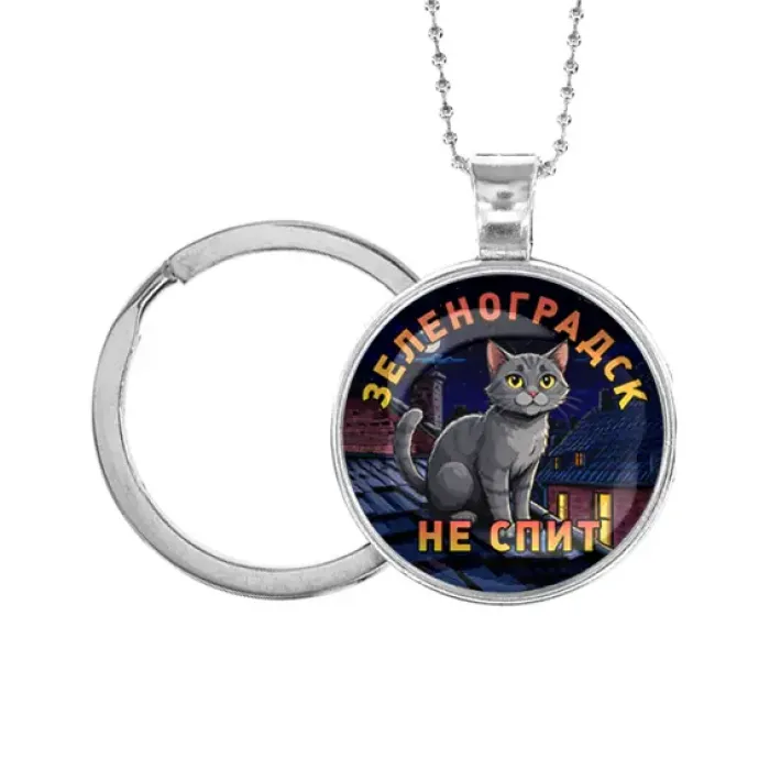 Кулон-брелок, цвет серебро, с цепочкой и кольцом, Зеленоградск не спит C0212054