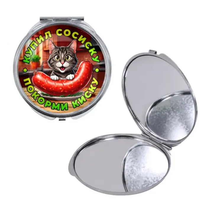 Круглое складное зеркало, цвет серебро, Купил сосиску C0213016