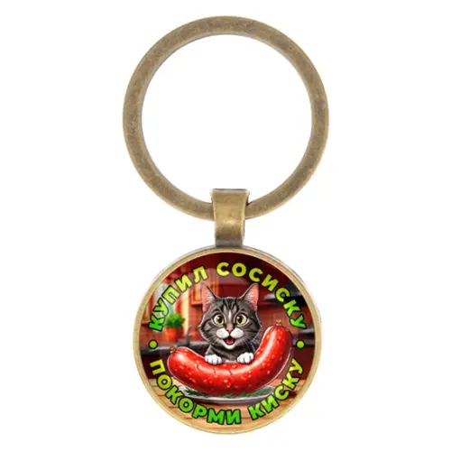 Круглый брелок, цвет бронза, Купил сосиску C0213017