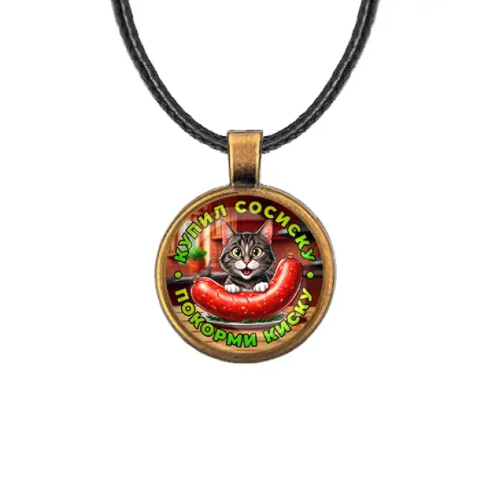 Кулон, цвет бронза, со шнурком, Купил сосиску C0213029