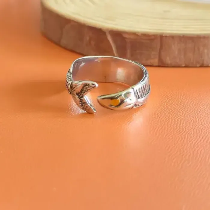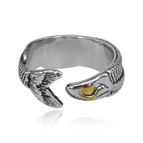Безразмерное кольцо Щука из металла с покрытием под золото и серебро.