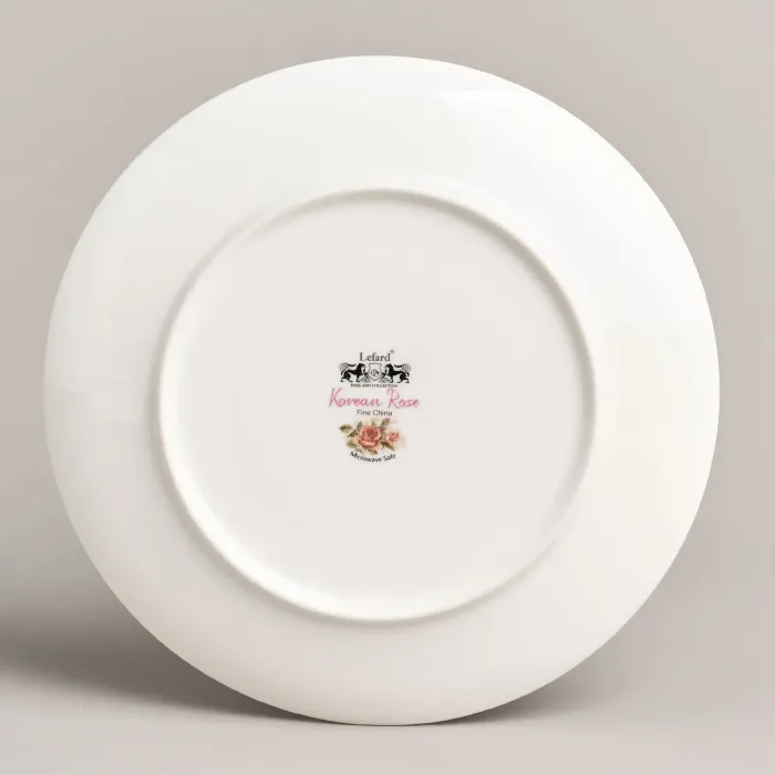 Набор из двух закусочных тарелок диаметром 20,5 см предназначен для сервировки холодных и горячих закусок. Изделия из тонкостенного белого фарфора бренда Lefard серии «Корейская роза» отличаются лёгкостью и имеют декоративную окантовку.