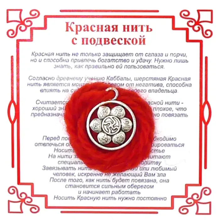 Красная нить с мантрой Ом Мани Падме Хум,цвет сереб, металл, шерсть AN0339
