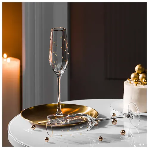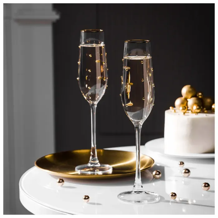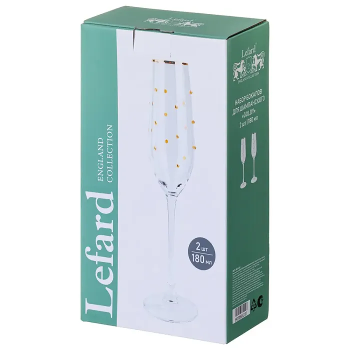 Набор бокалов для шампанского Goldy от бренда Lefard предназначен для подачи игристых вин. Бокалы изготовлены из экологичного стекла и поставляются в подарочной упаковке.