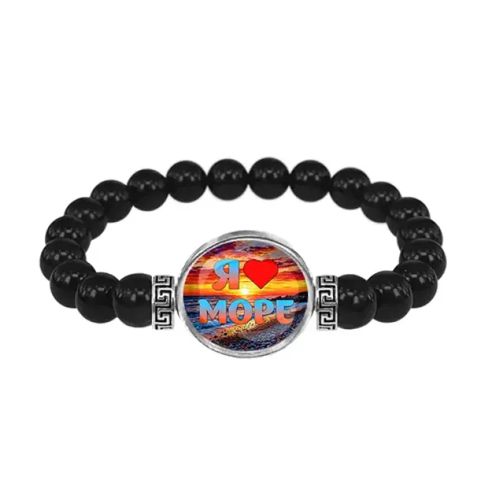 Браслет из черного агата, Я люблю море C0301056