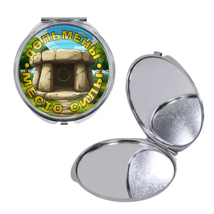 Круглое складное зеркало, цвет серебро, Дольмены - место силы C0302016