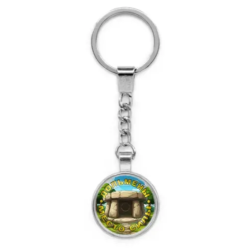 Круглый брелок, цвет серебро, с цепочкой, Дольмены - место силы C0302022