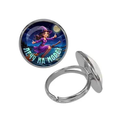 Безразмерное кольцо из бижутерного сплава с изображением под выпуклой стеклянной линзой.