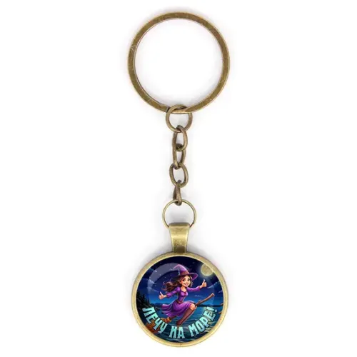Брелок круглой формы с изображением и цепочкой. Изготовлен из бижутерного сплава со стеклянной линзой.