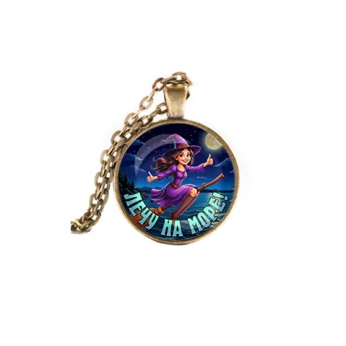Бижутерный кулон с изображением и защитной стеклянной линзой, в комплекте с цепочкой.
