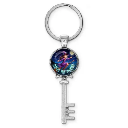 Брелок для ключей из бижутерного сплава с покрытием под серебро и стеклянной линзой. Дизайн с надписью «Лечу на море».