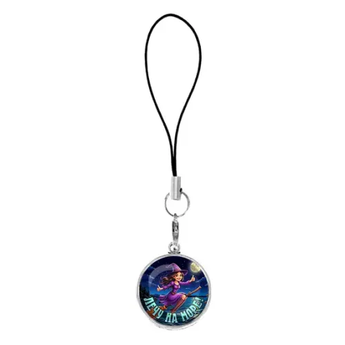 Подвеска для телефона из бижутерного сплава с изображением под стеклянной линзой.