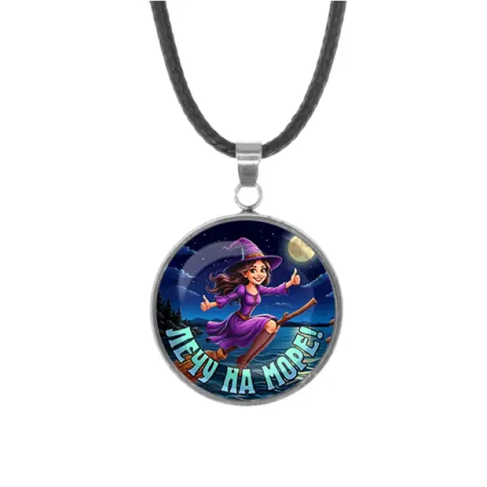 Кулон из нержавеющей стали со шнурком. Изображение расположено под выпуклой стеклянной линзой диаметром 25 мм.