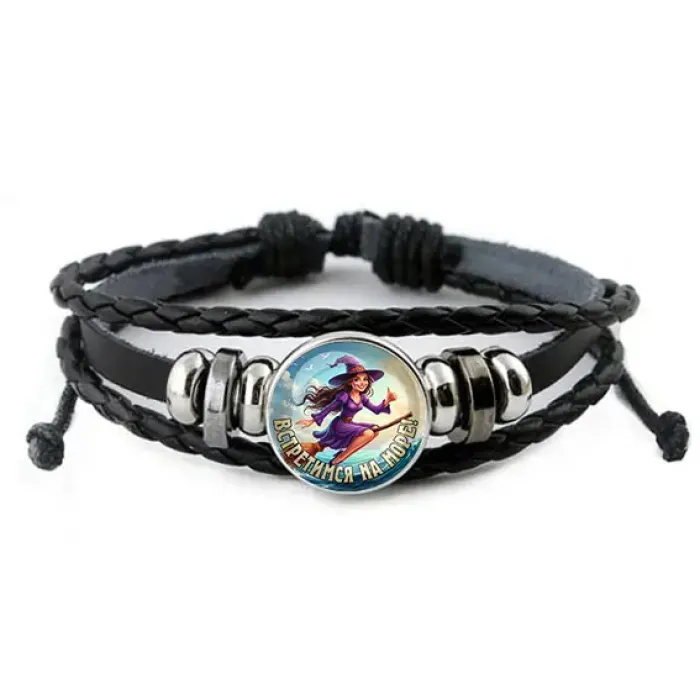 Материал и изготовление: Искусственная кожа (экокожа), бижутерный сплав с покрытием под серебро. Декоративный элемент с изображением под выпуклой стеклянной линзой.