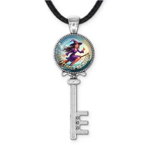 Кулон-ключ из бижутерного сплава со шнурком и стеклянной линзой.