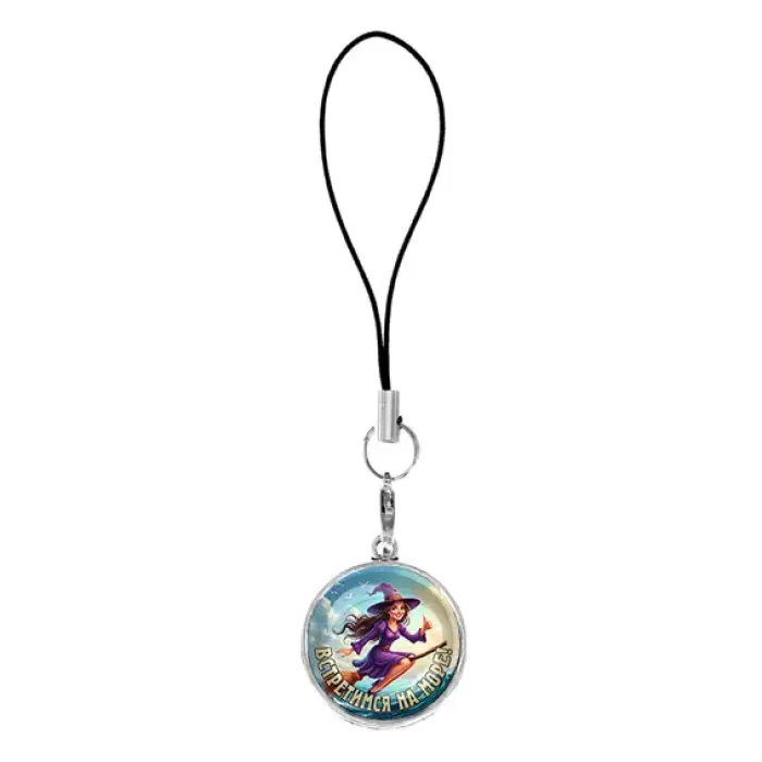 Подвеска-брелок для телефона из бижутерного сплава под серебро с изображением под стеклянной линзой.