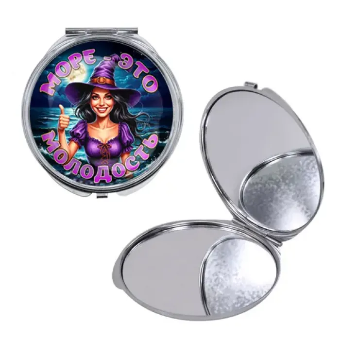 Круглое складное зеркало, цвет серебро, Море - это молодость C0306016