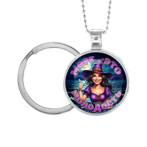 Кулон-брелок из бижутерного сплава с покрытием под серебро и стеклянной линзой. Дизайн с тематическим изображением.