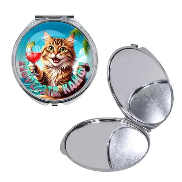 Круглое складное зеркало, цвет серебро, Море - это кайф C0307016