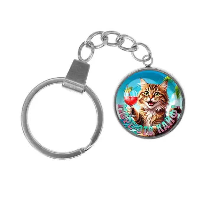 Брелок из нержавеющей стали с изображением моря под выпуклой стеклянной линзой.