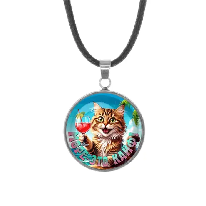 Кулон из нержавеющей стали со шнурком, с изображением под выпуклой стеклянной линзой.