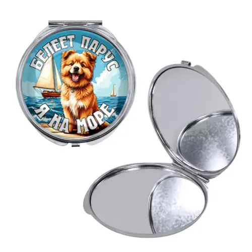 Круглое складное зеркало, цвет серебро, Я на море C0308016